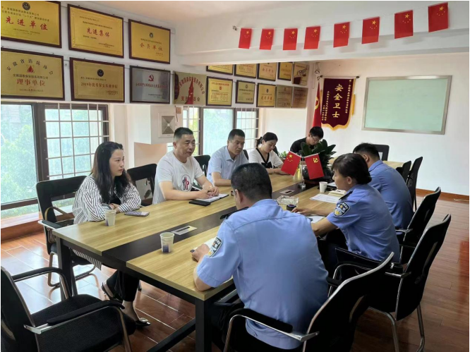 为加强学习交流,促进企业发展,2023年5月16日上午,合肥市保安管理处——黄处一行三人到安徽国泰保安服务有限公司考察交流工作经验。安徽国泰保安服务有限公司董事长,及业务骨干参加座谈交流。